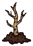 Cuando es talado, el jugador recibe más o menos Troncos y Ramitas dependiendo del ciclo en el que esté.
